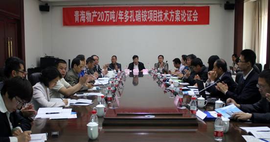 青海物產(chǎn)工業(yè)投資有限公司20萬噸/年多孔硝銨項(xiàng)目技術(shù)方案論證會(huì)于2013年5月17日-19日在青海西寧召開,省物產(chǎn)集團(tuán)總公司總經(jīng)理王玉輝、副總經(jīng)理耿保平、北川工業(yè)園管委會(huì)副主任薛萬革、建行西寧支行副行長王硯宏蒞臨會(huì)議指導(dǎo),會(huì)議由物產(chǎn)工投常務(wù)副總經(jīng)理常海寧和專家委員會(huì)主任分別主持。煙臺(tái)萬華高級(jí)工程師王全文、山西天脊高級(jí)工程師劉金亮、湖北鐘祥凱龍高級(jí)工程師楊國富、華陸工程科技有限公司教授級(jí)高工劉艷軍、陜西興化工程師馮衛(wèi)、物產(chǎn)民爆總經(jīng)理袁海玲、物產(chǎn)工投高級(jí)工程師薛玉貴、華陸工程科技有限公司副總經(jīng)理齊吟、賽鼎工程有限公司商務(wù)部副主任劉軍彪及相關(guān)主設(shè)人員、項(xiàng)目建設(shè)單位代表等共36人參加了會(huì)議。專家委員會(huì)推選楊國富擔(dān)任主任委員、袁海玲擔(dān)任副主任委員。